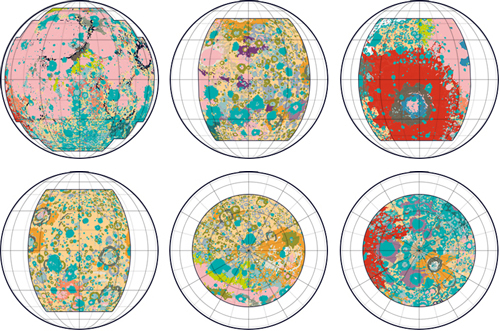 The end result is a summarized geologic map rather than a precise replication of the original data. But even though I combined geologic features and didn’t include precise scientific labels, I think the map still works in its limited role as a condensed overview of Moon geology.
